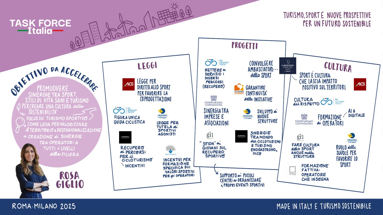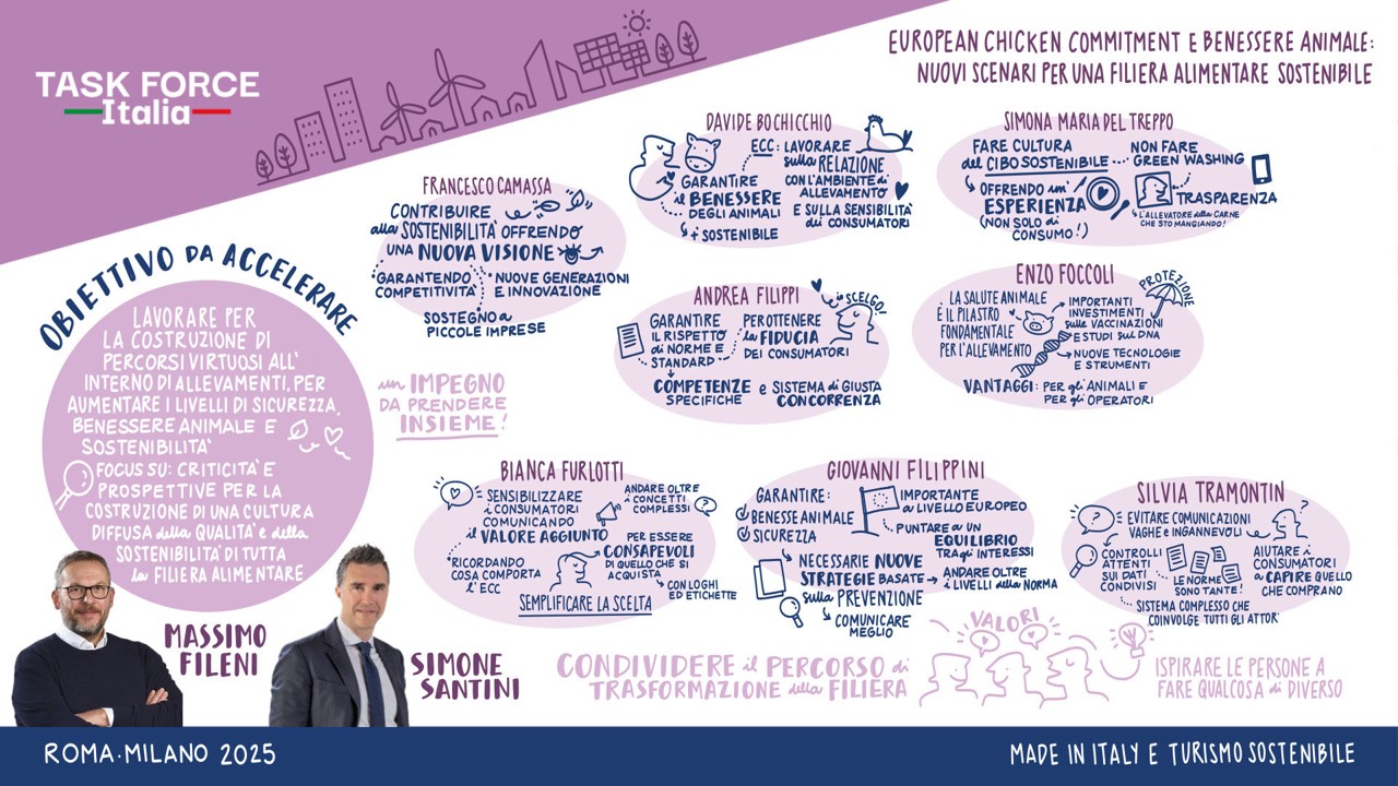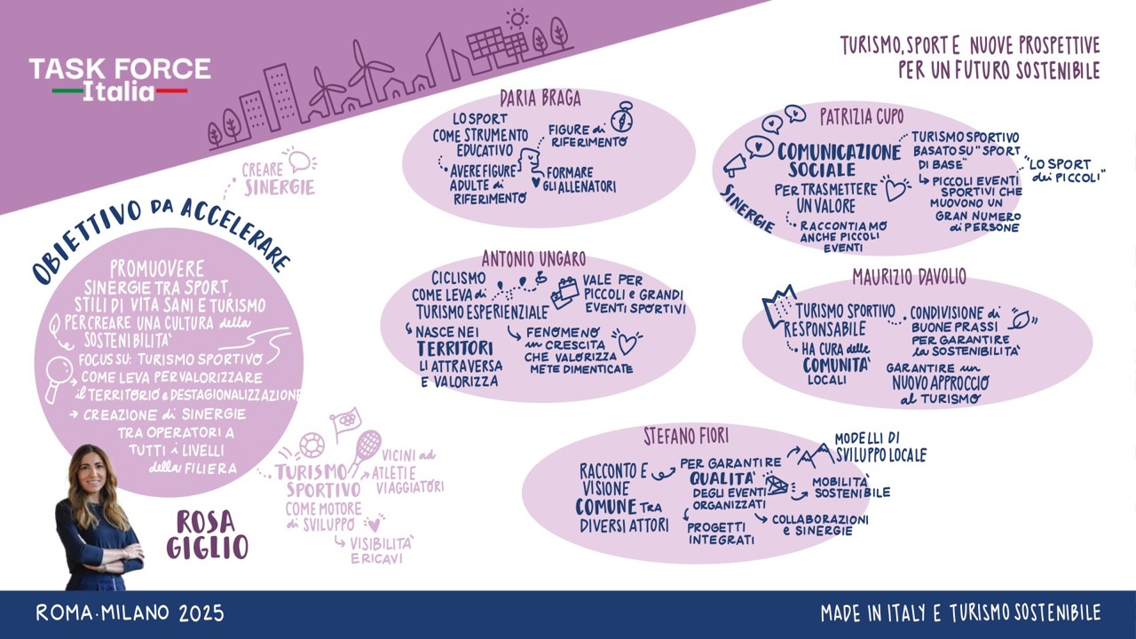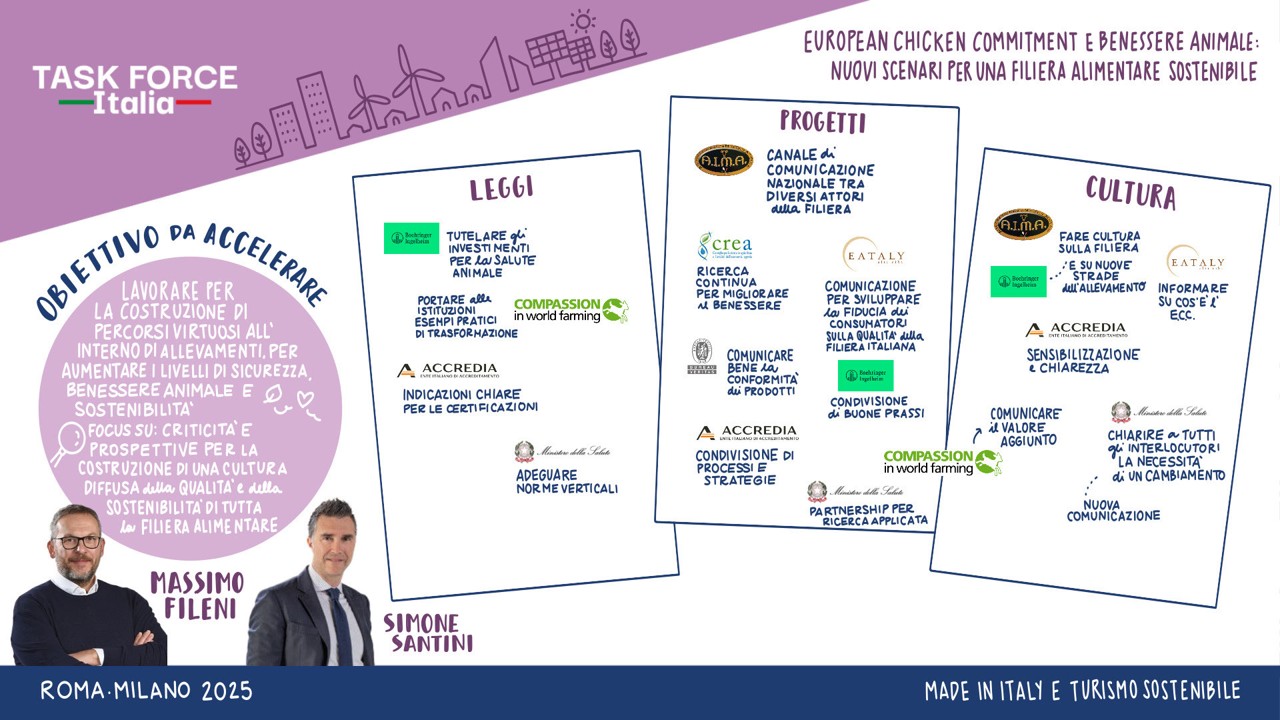 Sen. Gian Marco Centinaio, Vicepresidente del Senato | Giordano Fatali, President & Founder CEOforLIFE - Task Force Italia | Palmiro Noschese, Practice Leader Made in Italy e Turismo Sostenibile, Task Force Italia | On. Ilaria Cavo, Vicepresidente Commissione Attività Produttive, Commercio e Turismo, Camera dei Deputati | Alessandra Priante, Presidente, ENIT Spa | Maurizio Davolio, Presidente, Associazione Italiana Turismo Responsabile | Rosa Lotito, Presidente, Associazione Nazionale Ospitalità Italiana Made in Italy (ANOI) | Marina Lalli, Presidente, Federturismo Confindustria | Giuseppe Roscioli, Vicepresidente Vicario, Federalberghi | Giuseppe De Martino, President Tourism and Leisure Industry, Unindustria | Massimo Caputi, Presidente, Associazione Marchi Storici d’Italia | Rosa Giglio, Head of Brand Marketing & Communication, BWH Hotels Italia & Malta | Daria Braga, Direttore, Fondazione Laureus Italia Ets | Patrizia Cupo, Responsabile Comunicazione, AiCS | Antonio Ungaro, Responsabile Ufficio Stampa e Comunicazione, FCI – Federazione Ciclistica Italiana | Maurizio Davolio, Presidente, AITR | Stefano Fiori, Vicepresidente, Federturismo/Confindustria, Membro del CDA, Convention Bureau di Roma e Lazio | Simone Frigerio, General Manager, Gruppo Frigerio | Eleonora Olivieri, Commercial Director Italy and Central Europe, GFL Cosmetics | Francesco Papini, Key Account Manager, Il Prisma | Silvia Pozzi, Direttore Operativo, Gruppo Gattinoni | Alessandro Prudente, Presidente, Federterziario Sport | Massimo Fileni, Vicepresidente, Gruppo Fileni | Simone Santini, General Manager, Gruppo Fileni | Giovanni Filippini, Direttore Generale della Sanità Animale, Ministero della Salute | Francesco Camassa, Presidente, AIMA | Davide Bochicchio, Ricercatore, CREA-ZA | Simona Maria Del Treppo, Food Safety, Health and Safety Director, Eataly | Andrea Filippi, Certification Service Line Manager, Bureau Veritas Italia | Enzo Foccoli, Head BU Livestock, Boehringer Ingelheim Animal Health Italia | Bianca Furlotti, Responsabile Settore Alimentare Italia, Compassion in World Farming | Mattia Grillini, Vicepresidente, Responsabile Marketing, Comunicazione e Soci, Camst Group | Silvia Tramontin, Vicedirettore Generale Vicario, Direttore Dipartimento Laboratori di Prova, ACCREDIA | Ada Rosa Balzan, CEO, ARB SB | Paolo Bellè, Cluster General Manager, Hilton Hotels & Resorts | Giorgio Caire di Lauzet, Fondatore e Amministratore Delegato, DREAM&CHARME | Damiano De Crescenzo, Direttore Generale, Planetaria Hotels | François Droulers, Founder and CEO, Move Hotels | Andrea Galardi, Founder & CEO, Soges Group | Giacomo Guzzardi, Cluster General Manager, Le Meridien Visconti Rome and Palazzo Scanderbeg – Rome | Paolo Meroni, School Director, Istituto Marangoni Milano | Lorenzo Nencini, Cluster General Manager, Complex di Roma - Starhotels Metropole & Starhotels Michelangelo