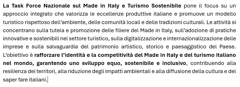 - Sostenibilità e responsabilità: Made in Italy e turismo sostenibile devono crescere insieme, unendo eccellenza e rispetto per l’ambiente.