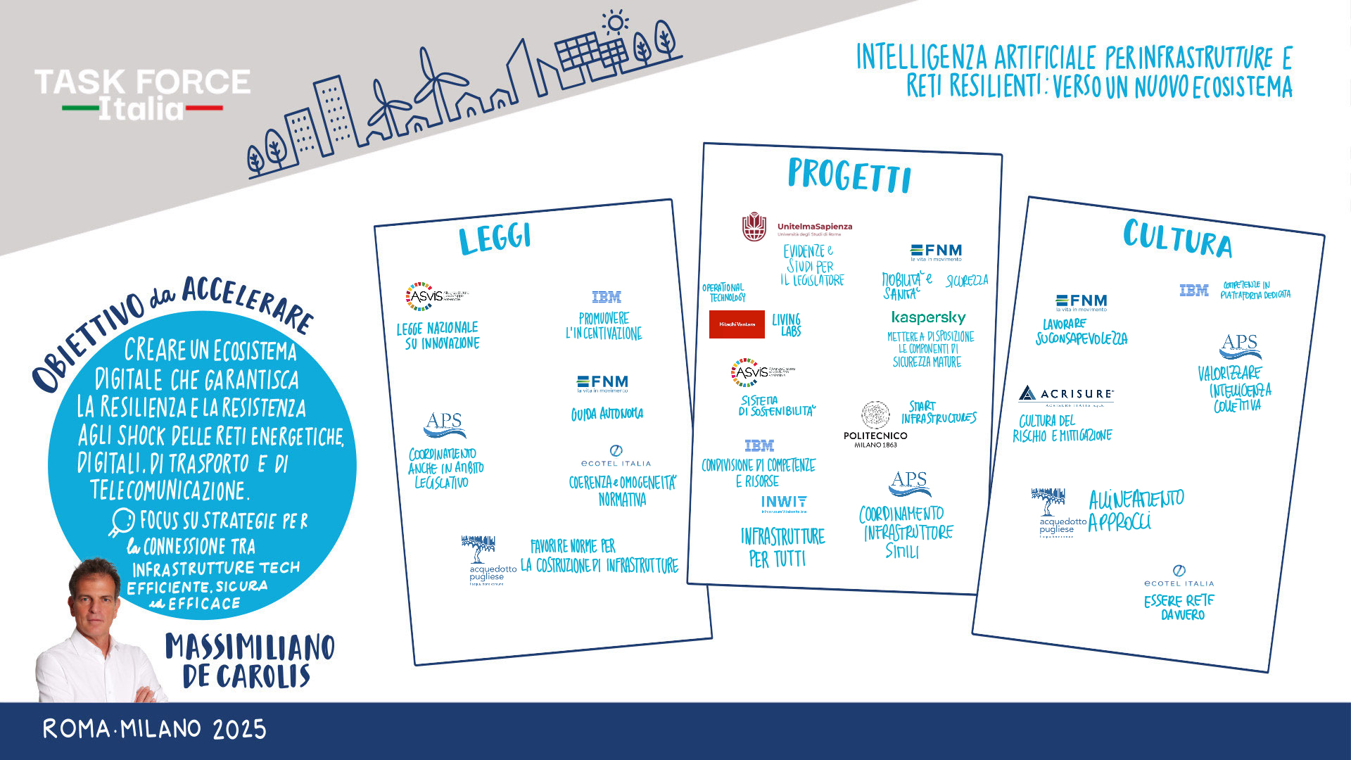 A tal fine, il contributo fondamentale sarà rappresentato dai Position Paper, documenti strategici elaborati dalle Task Force Nazionali di Task Force Italia per sintetizzare, valorizzare e comunicare il lavoro svolto su tematiche specifiche. Questi documenti saranno presentati il 9 dicembre 2025 presso la Sala Regina di Palazzo Montecitorio, un appuntamento che Mulè ha ricordato in chiusura del proprio intervento.